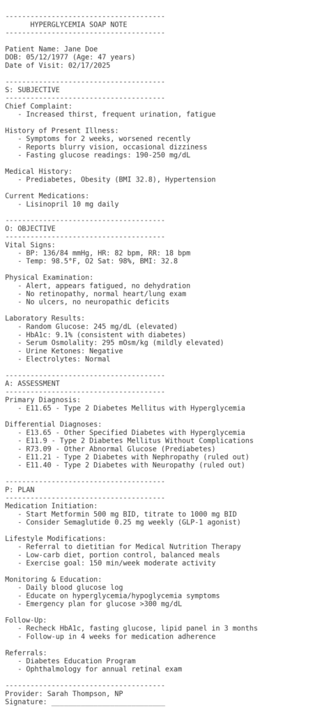 Hyperglycemia SOAP Note – Nurse Practitioner SOAP Note